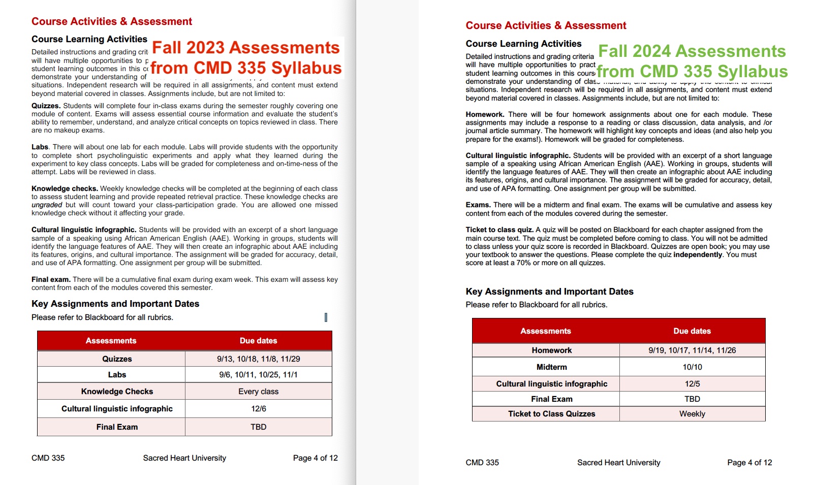 Changes to assessments in response to student feedback for CMD 335 Share this: Click to share on X (Opens in new window) X Click to share on Facebook (Opens in new window) Facebook Like Loading...