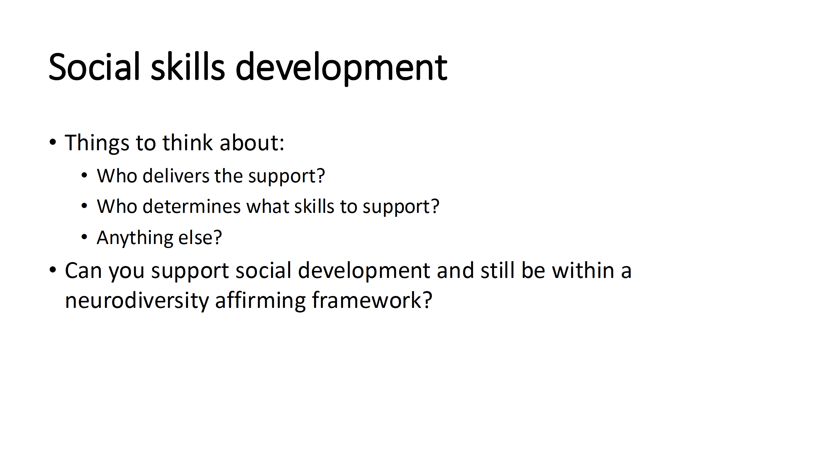 Think-pair-share PowerPoint Slide from SLP 510 Here is an example of how we start discussions about neurodiversity relative to treatment of preschoolers with autism. Share this: Click to share on X (Opens in new window) X Click to share on Facebook (Opens in new window) Facebook Like Loading...